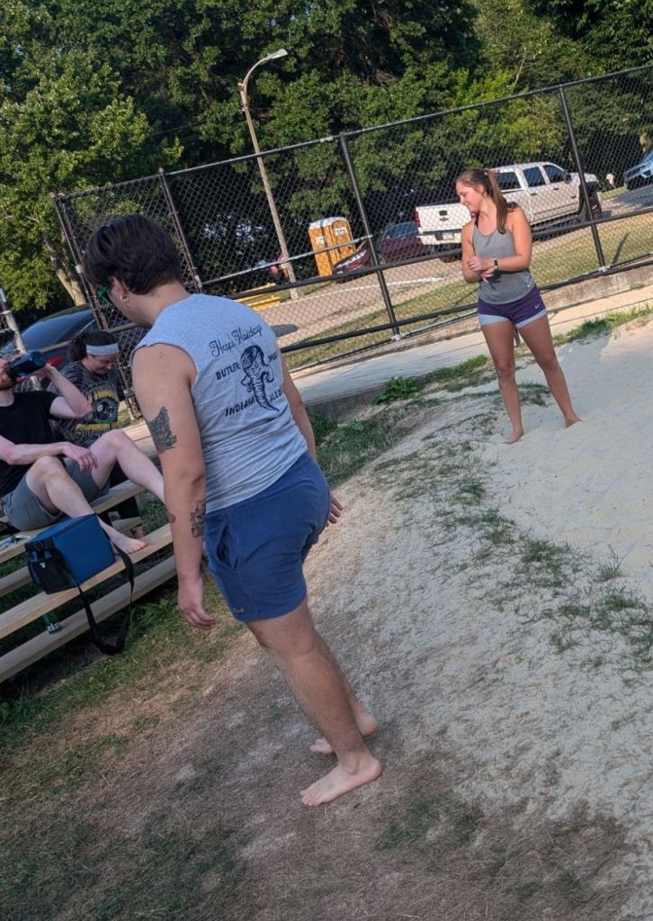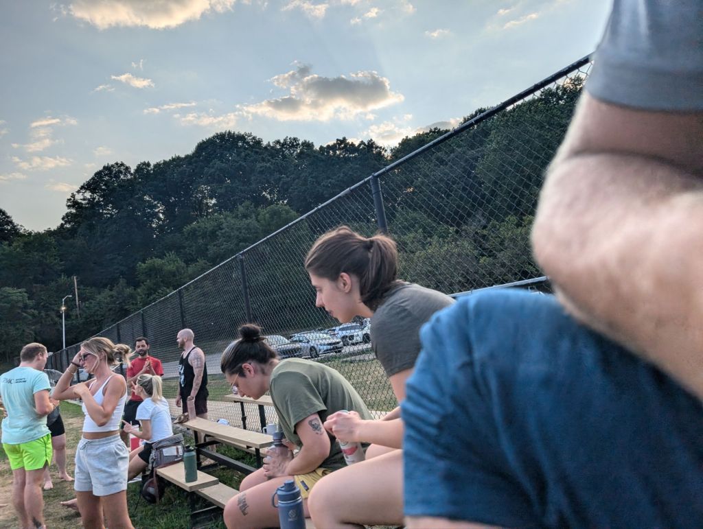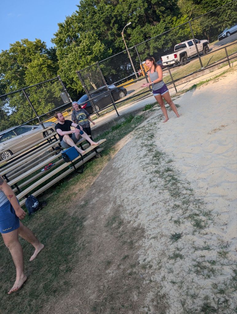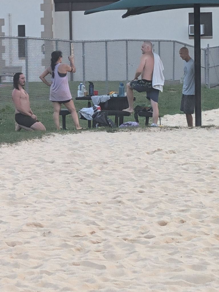 It took only a short while before paramilitary targeting and tracking took place. A random guy showed up claiming to be the friend of a player Taylor signed up to play on my team. The coach put him on the team next to me and during the game he verbally assaulted me. It was a planned sequence they coordinated even with organizers and coaches. It is the guy in the gray shirt and blue shorts…