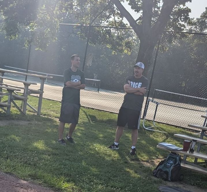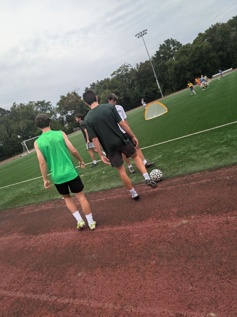 While walking around the oval, several school administrators bunch up together with highschool soccer players blocking the path on the running track. One school teacher was wearing a shirt that had that DICE written on it, which presumably stands for Alderdice Highschool in Squirrel Hill Pittsburgh PA USA…