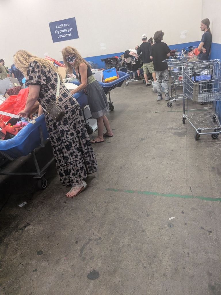 As soon as he started taking pictures of bins and the room, this group of women were waiting for him to it seemed, and maybe even harassing him to start defensively taking pictures.