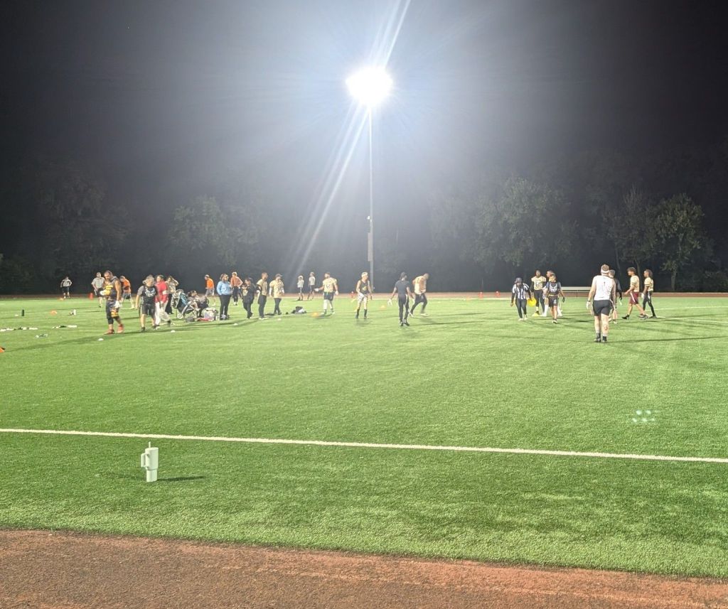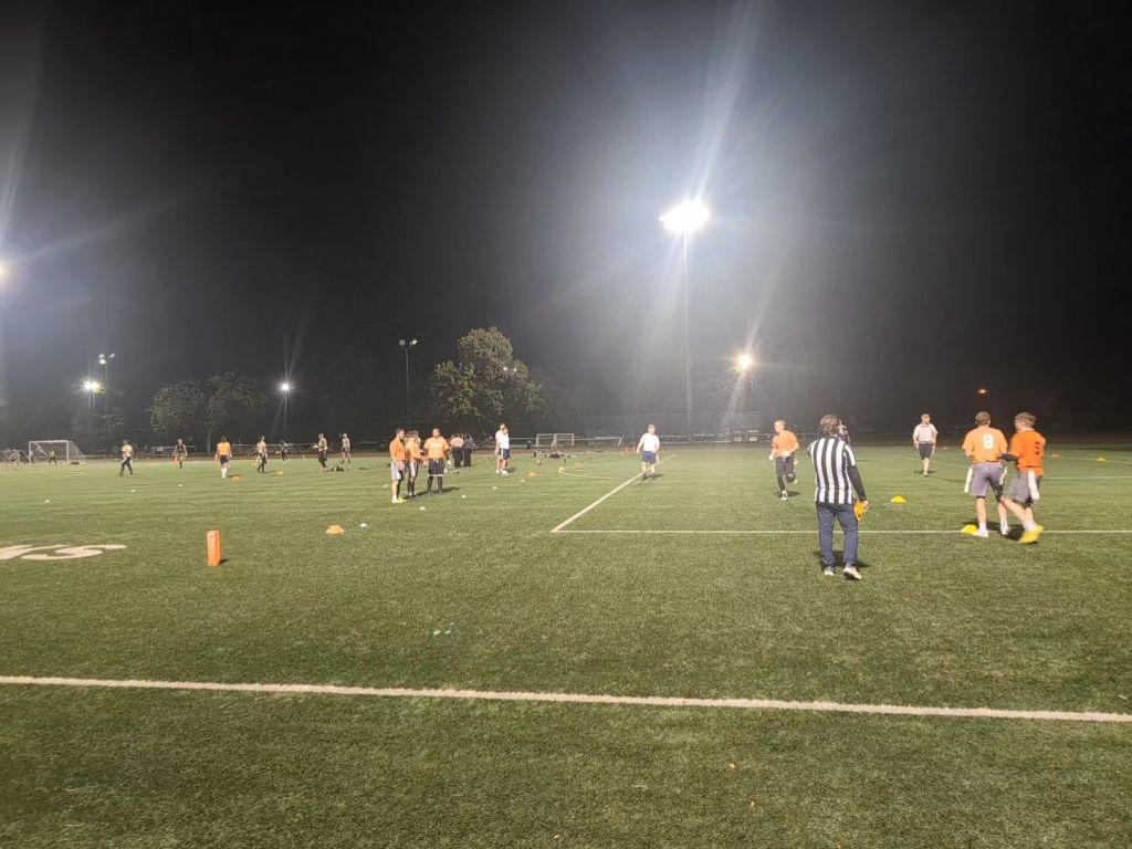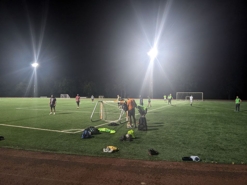 On one side of the field there is a mostly African and Middle Eastern sports game…