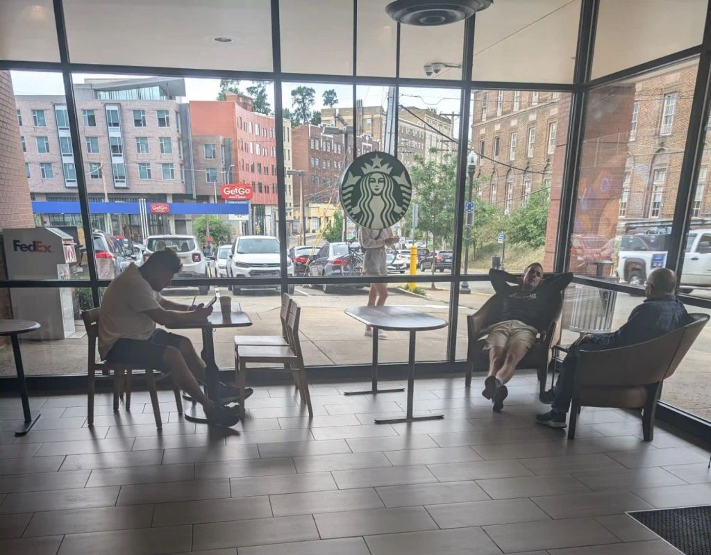 This is what people do at this Starbucks to new Eastern Europeans that wander in, and these paramilitary human trafficking groups begin to try to abduct them by these coordinated yet secretive human trafficking activities using isolation and these types of targeted abusive relationship building by force in a secretive way…