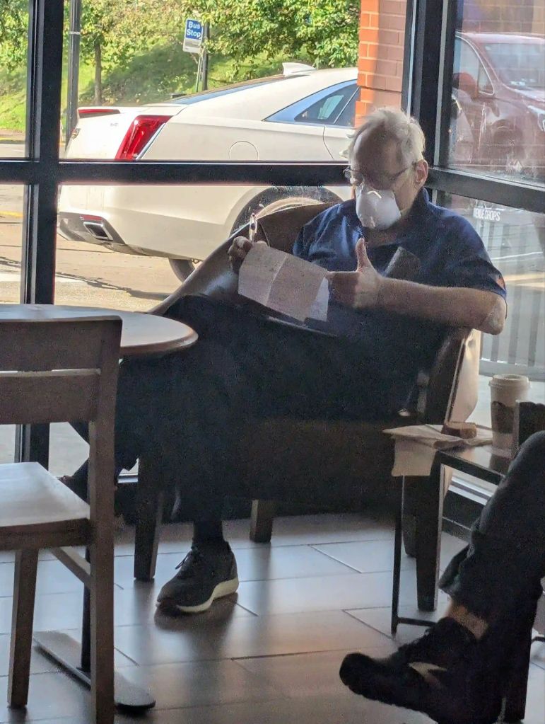 After the group of persons who said they were originally from Ukraine a man appeared who was sitting at the coffee shop every morning and seemed to be waiting at around the same time…