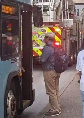 The person got on the bus before his identity was obtained but he appeared in every which way as a person originally from Eastern Europe trapped in a highly routine slave labor captivity being intensely exploited and held captive here with a guard on lookout in a wheelchair at a bus stop he came to every day, like clockwork…