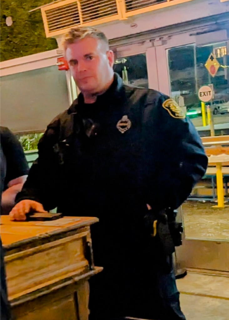 At the entrance the police officer that many from Europe and Eastern Europe have previously complained about for coordinating with local human trafficking paramilitary groups to target EU citizens from Europe and Eastern Europe. This officer is often by this Irish Even Center and the Coop Popular location across the street to where many from Europe and Eastern Europe attend.