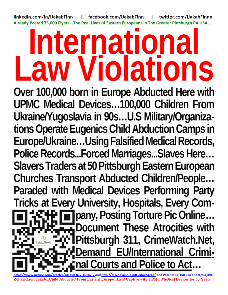 Pittsburgh PA USA is ranked at #9 for child trafficking, human trafficking, sex trafficking, holding men, woman, and children as captives openly in plain view while paramilitary gangs patrol, terrorize them, hold them captives, and constantly talk about freedom, America, and American values while publicly and openly torturing captives abducted to here…
