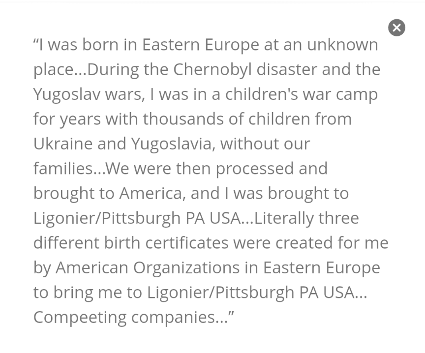 I was in a Pittsburgh area organization run children’s facility in Eastern Europe in the 80s and 90s, run and operated by the Pittsburgh-Heinz and Ligonier-Bethlen childrens organizations gathering up children from all over Eastern Europe and were preparing us for transport to the Pittsburgh area through various ways We were there without our families being given names and taught languages.